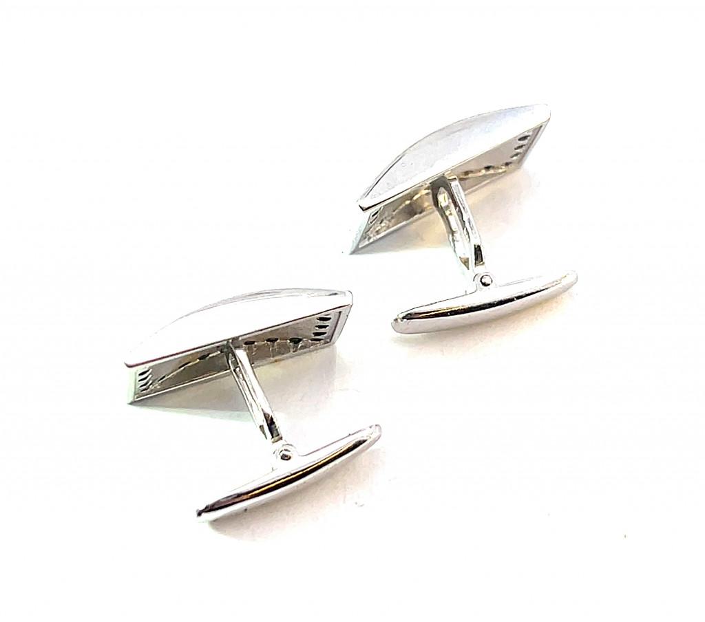 Manžetové knoflíky v bílém zlatě o ryzosti 585/1000, punc labuť. Váha 7,99 g, rozměr 17 x 10,5 mm.