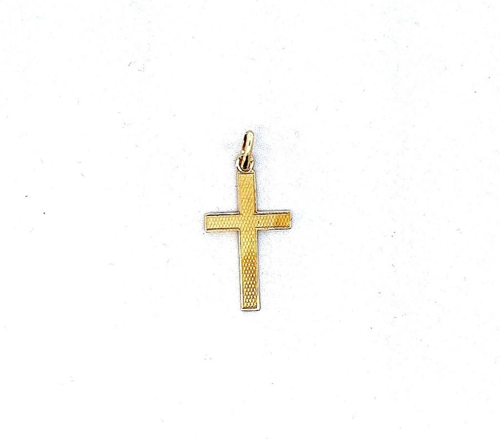 Zlatý přívěsek o ryzosti 585/1000, punc lvíček, váha 0,74 g, výška celkem i s očkem 25 mm, šírka v nejširším bodě 12 mm.