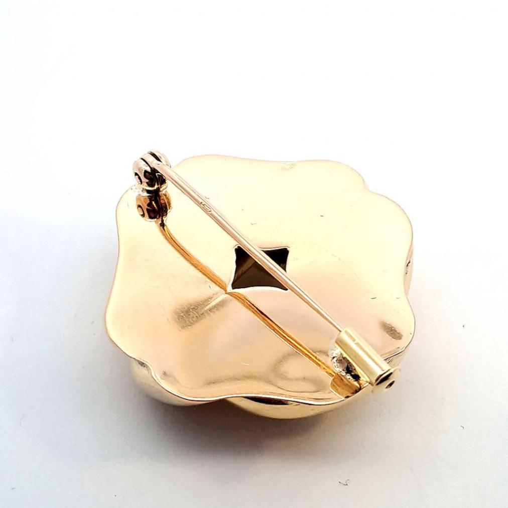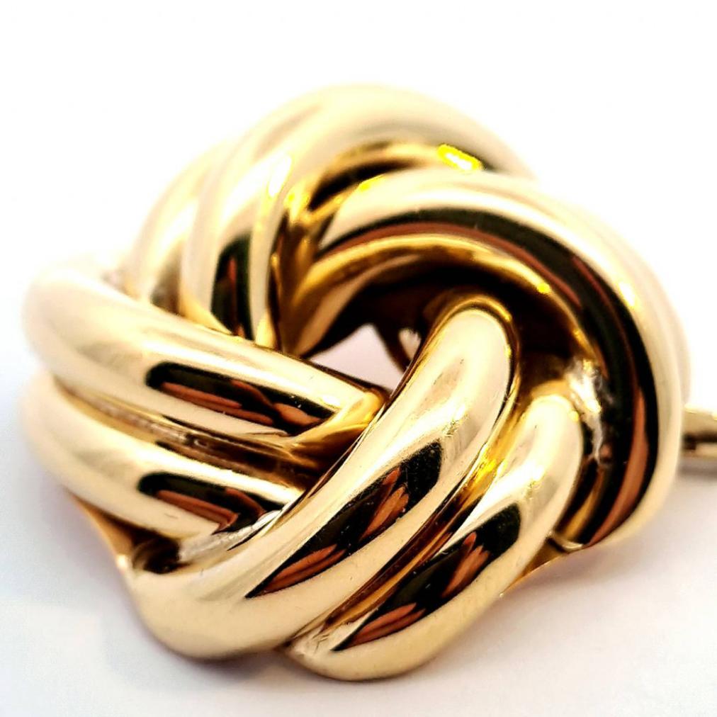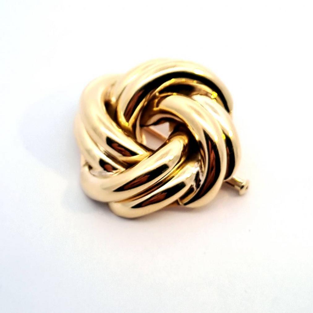 Velká brož ze žlutého zlata o ryzosti 585/1000 s puncem kůň (neplatný) pochází z období Rakousko - Uhersko, nově opuncováno platným puncem labuť. Tvar spleteného uzlu zdobí výrazné drážkování. Brož je dutá a jehlice má pojistku proti otevření. Průměr brože je 32 mm a její váha je 11,91 g.