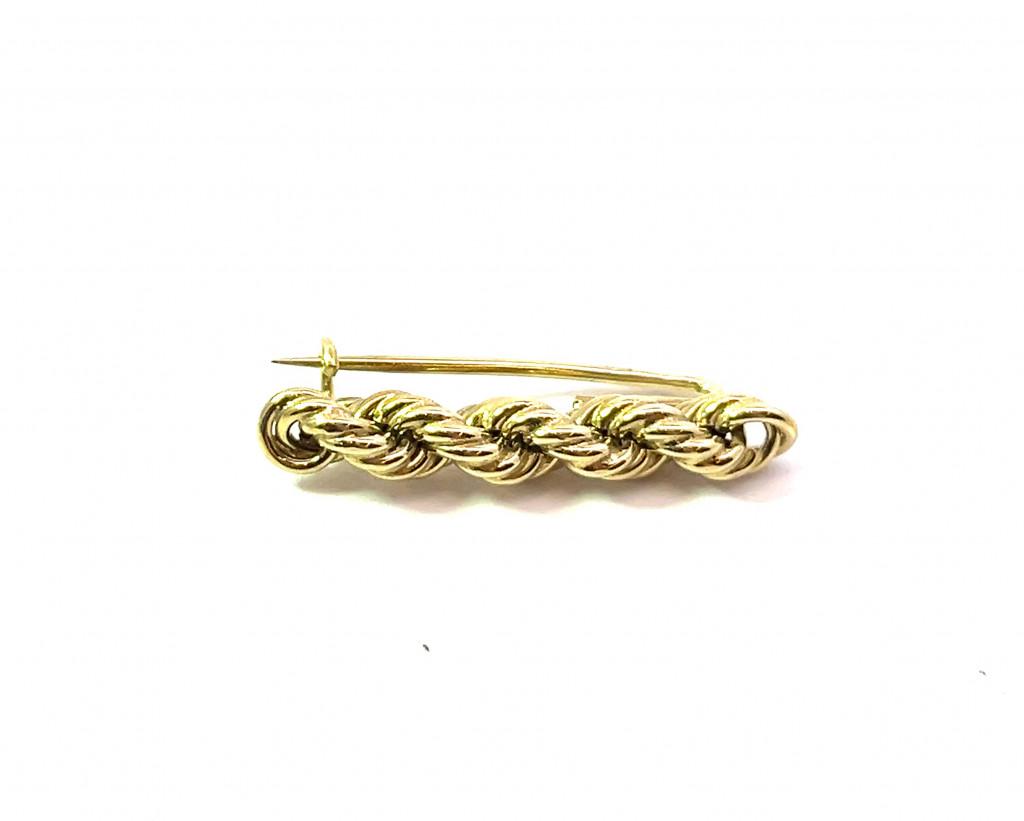 Zlatá brož o ryzosti 585/1000, punc labuť. Váha 1,09 g, délka 25 mm, v nejširším bodě 4,5 mm.