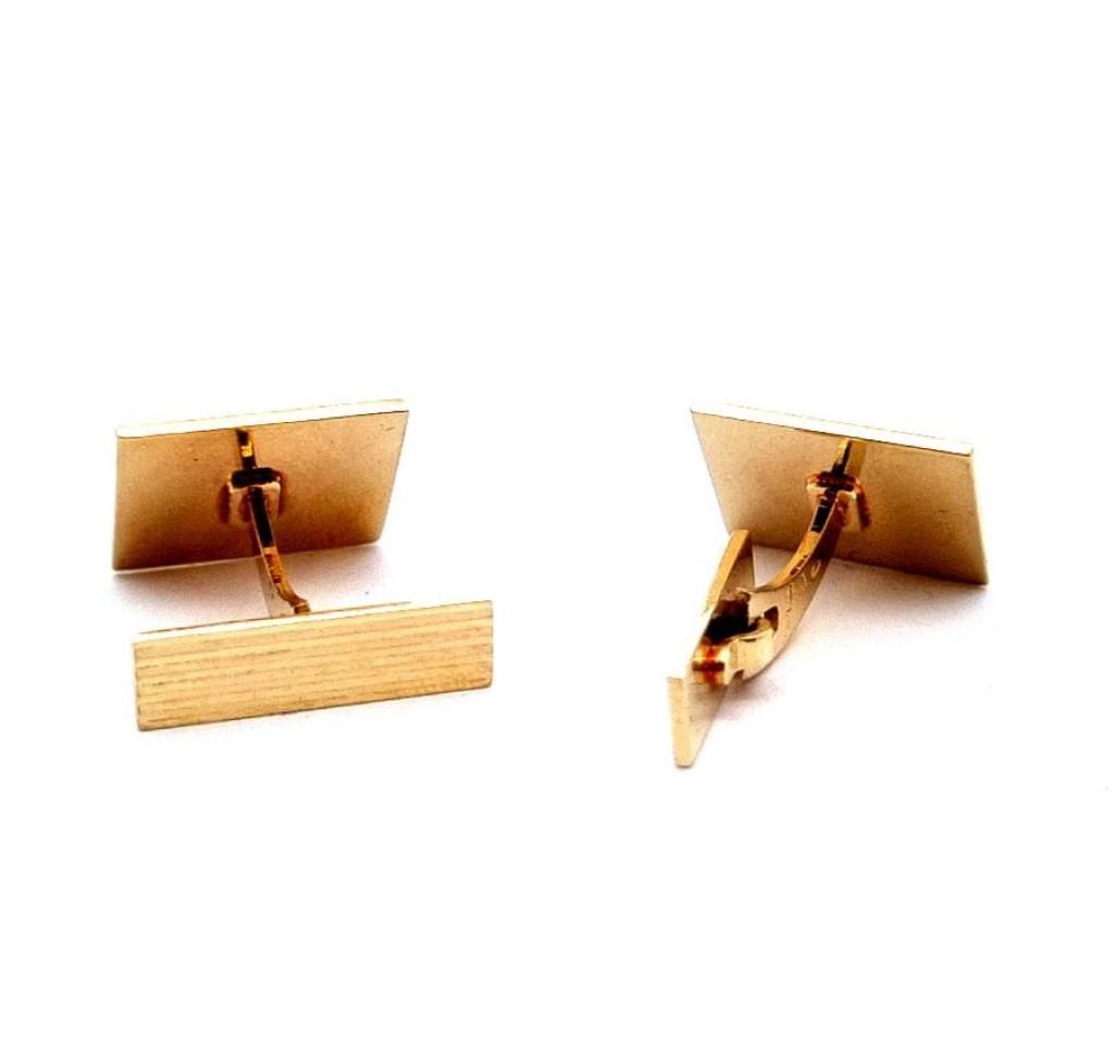 Zlaté manžetové knoflíčky o ryzosti 585/1000, punc čejka. Váha 9,22 g, rozměr 16 x 13 mm.