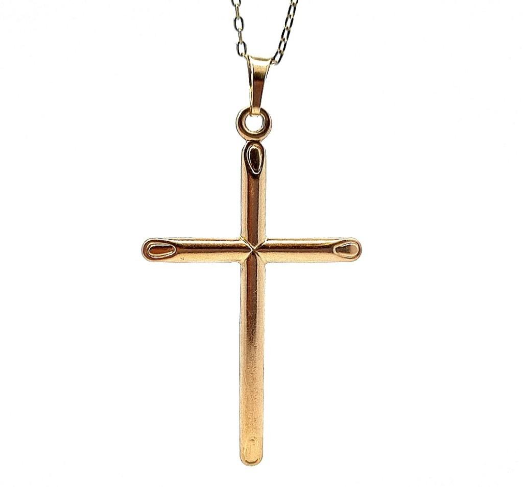 Zlatý přívěsek o ryzosti 585/1000, punc labuť, váha 1,69 g, výška celkem i s očkem 49 mm, šírka v nejširším bodě 26 mm.
