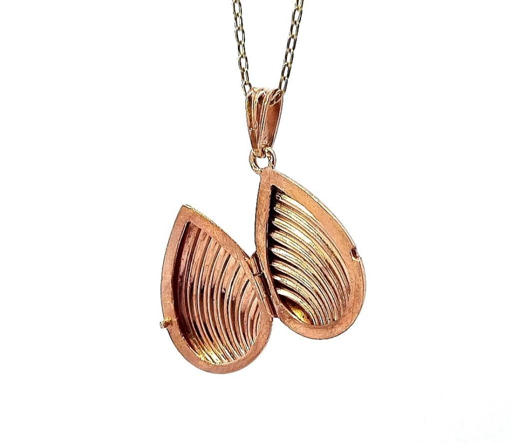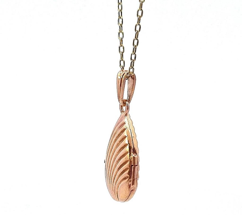Zlatý medailon o ryzosti 585/1000, punc labuť, váha 2,46 g, výška celkem i s očkem 26 mm, šířka v nejširším bodě 14 mm.