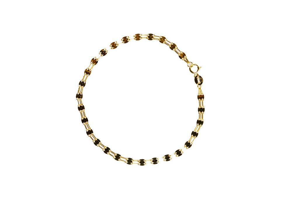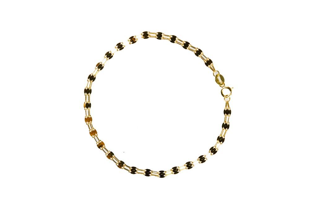 Zlatý náramek o ryzosti 585/1000, punc labuť, váha 1,27 g, šířka 3,5 mm. Délka 19 cm.