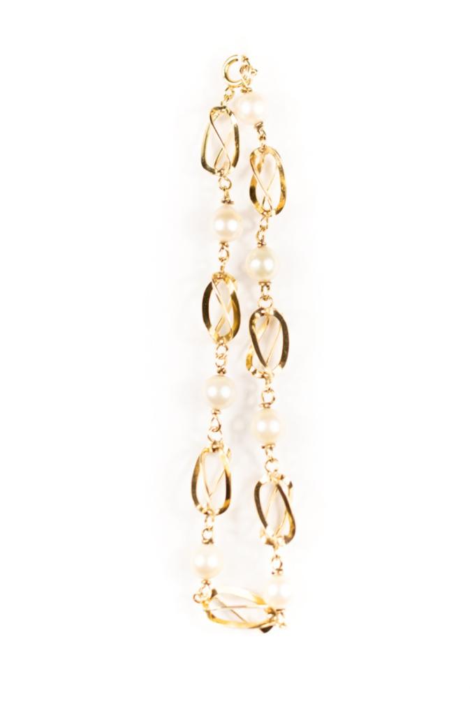 Zlatý náramek s perlami, 6,62g
