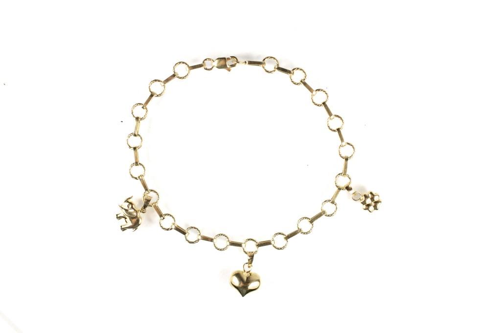 Zlatý náramek o ryzosti 585/1000, váha 5,69 g, punc labuť, celková délka i se zapínáním 19 cm.