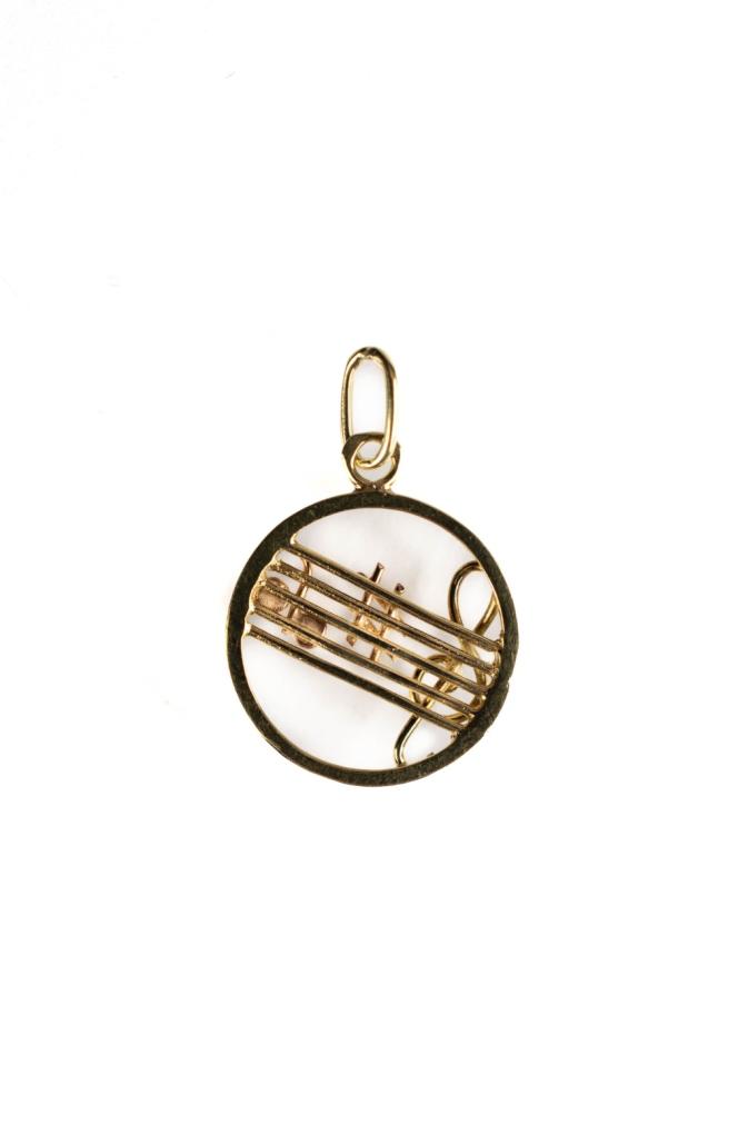 Zlatý přívěsek o ryzosti 585/1000, punc čejka, váha 0,97 g, na výšku i s očkem 22 mm, průměr 14 mm.