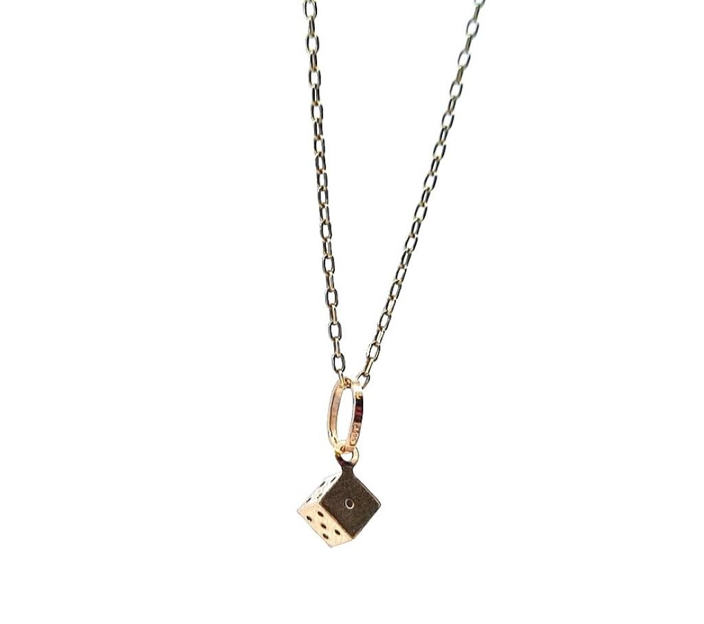 Zlatý přívěsek o ryzosti 585/1000, váha 0,41 g, výška celkem i s očkem 12 mm, šířka v nejširším bodě 4 mm.