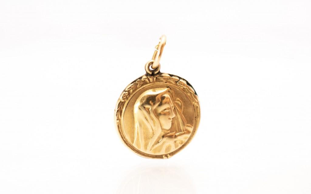 Zlatý přívěsek o ryzosti 585/1000, punc labuť, váha 1,03 g, výška celkem 20 mm.