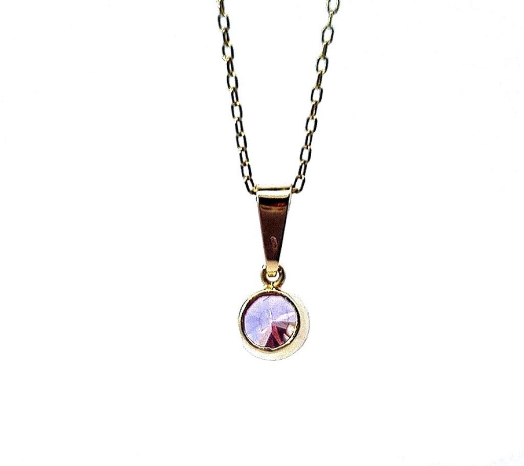 Zlatý přívěsek o ryzosti 585/1000, punc labuť, váha 1,33 g, výška celkem i s očkem 16 mm, šírka v nejširším bodě 7 mm.