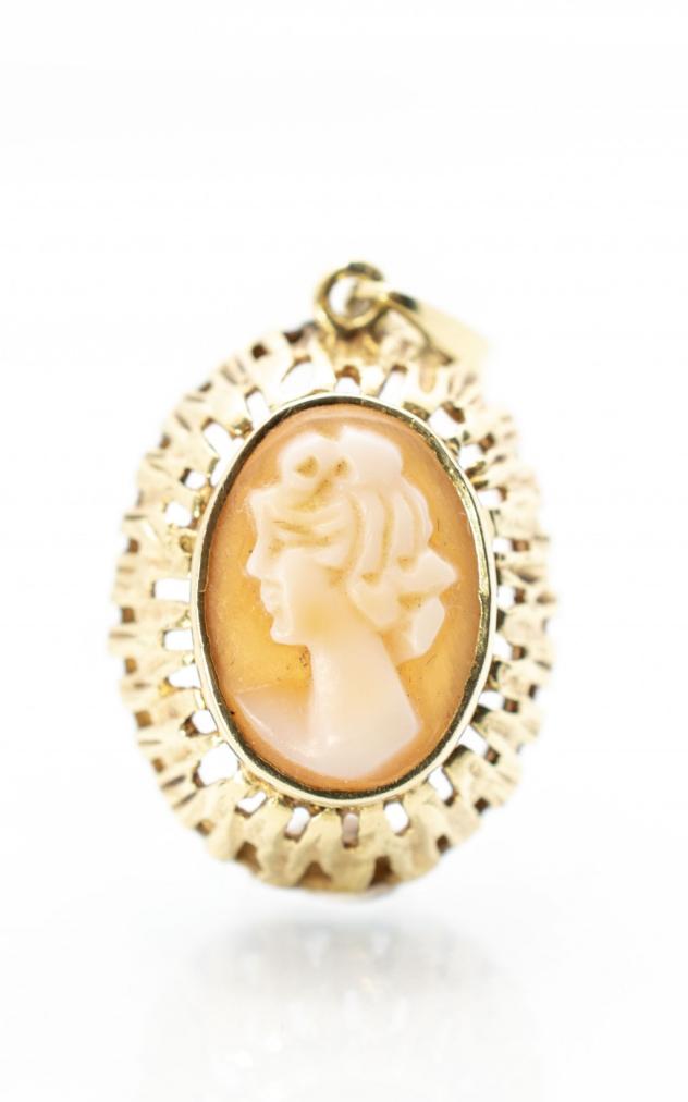 Zlatý přívěsek o ryzosti 585/1000, punc lyra, váha 2, 35 g, v nejširším bodě 14 mm, na výšku i s očkem 26 mm.