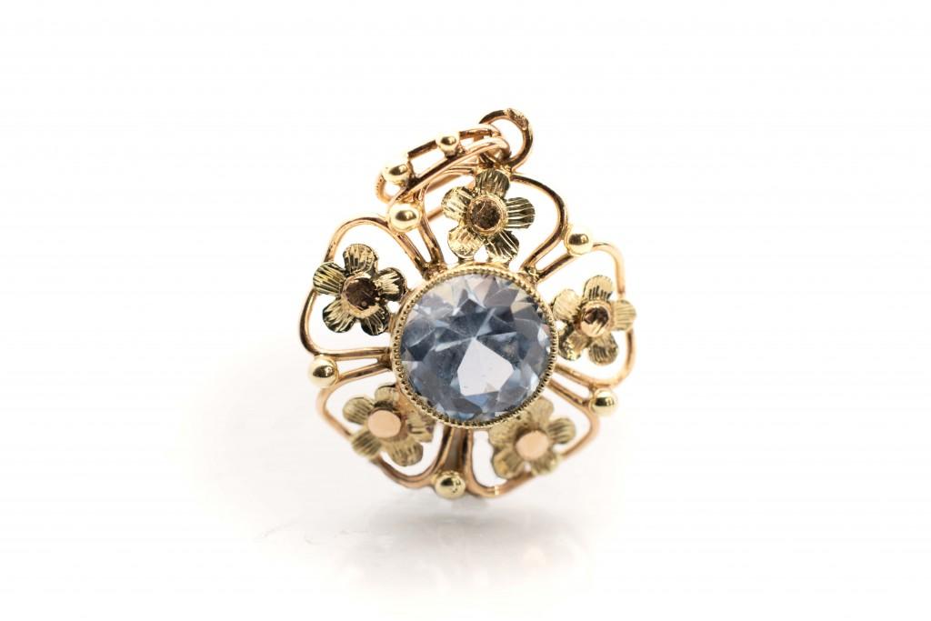 Zlatý přívěsek s modrým kamenem, 1,55g