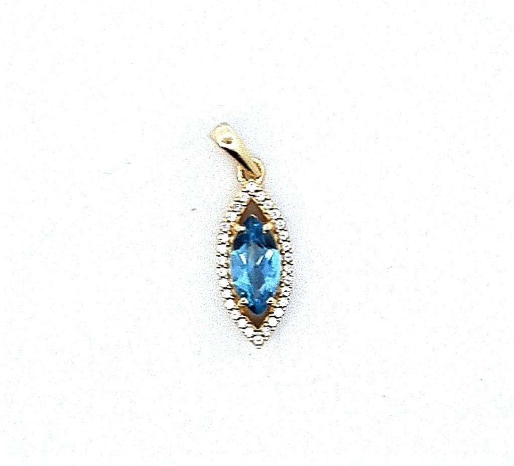 Zlatý přívěsek s modrým kamenem - topaz a zirkony