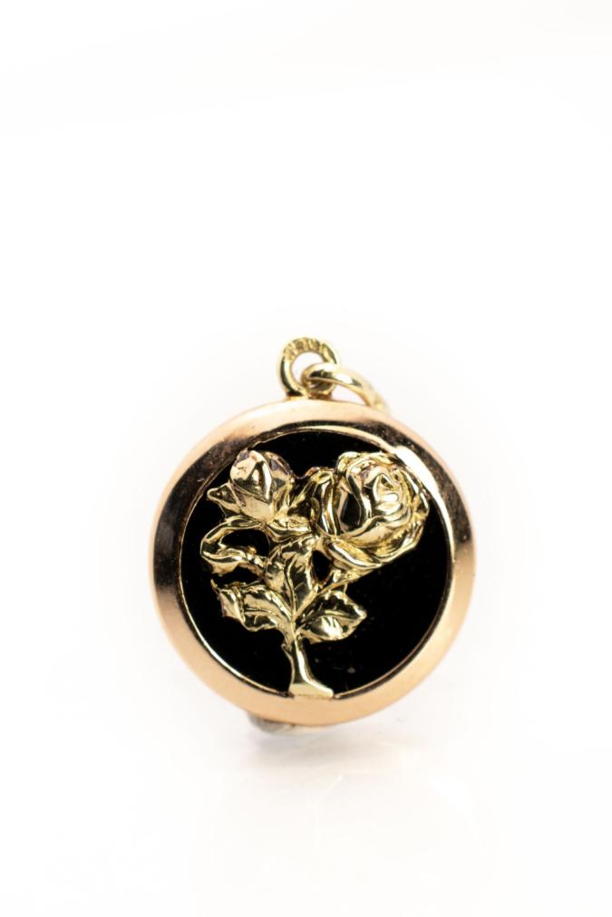 Zlatý přívěsek s onyxem, růže, 1,38g