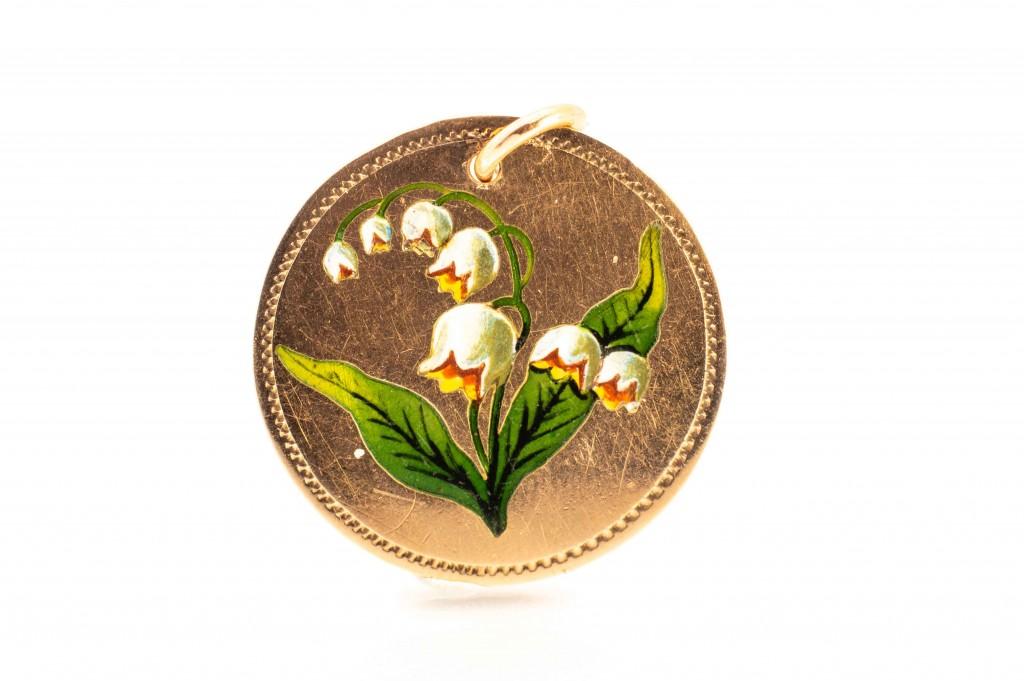 Zlatý přívěsek se smaltem- konvalinky, 1,98g