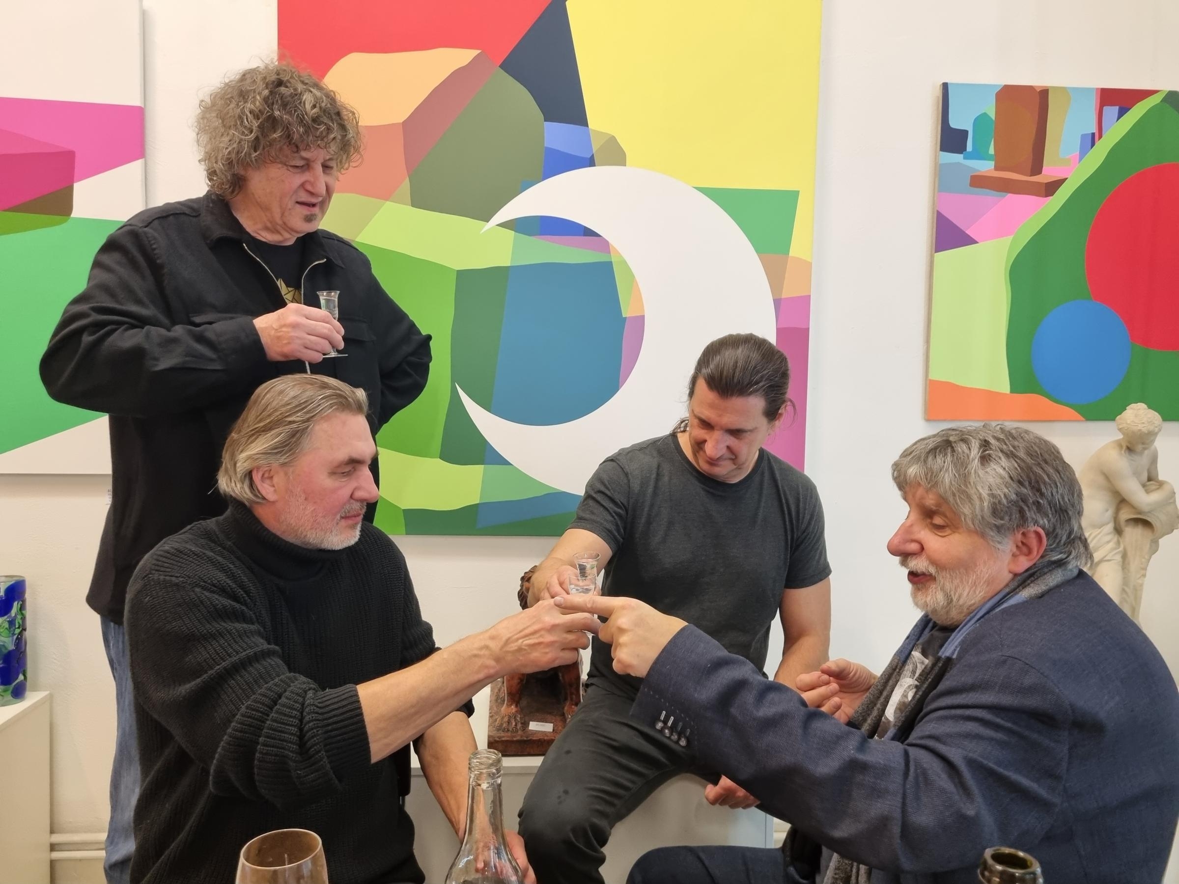 Společný výstavní projekt Divná parta, který v našem ateliéru propojil pět výrazných uměleckých osobností, byl úspěšně zakončen. Tato expozice nebyla jen přehlídkou děl, ale dialogem mezi různými přístupy k malbě, formě a obsahu. Děkujeme autorům – Stanislavu Divišovi, Jiřímu Tichému, Janu Pištěkovi, Aldinu Popajovi a Petru Veselému – za zapůjčení děl a všem návštěvníkům za neuvěřitelnou energii, kterou do galerie během výstavy vnesli.